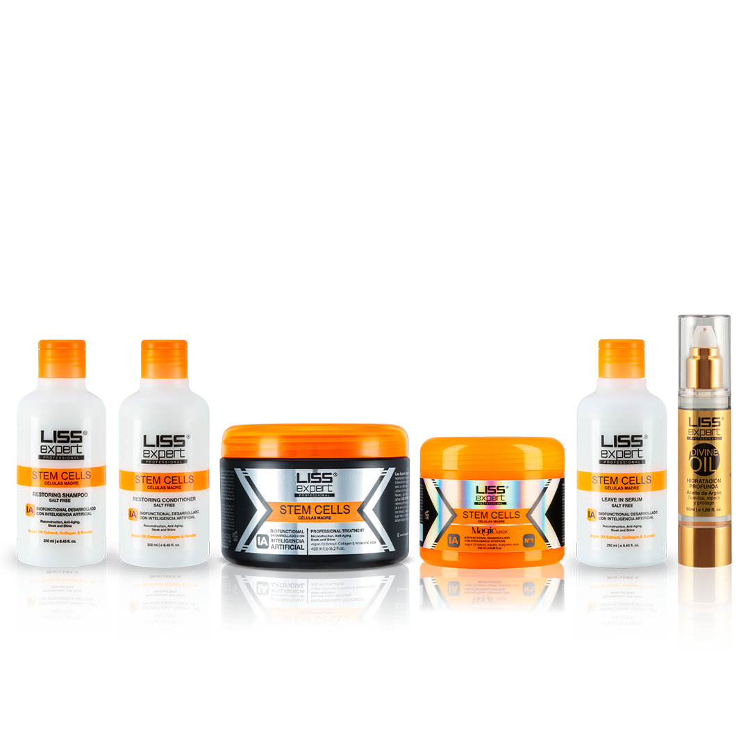 Este Liss Expert Stem Cell kit incluye todo lo que tu cabello necesita para estar más sano, brillante y pulido. Desde el tratamiento profesional hasta los productos de cuidado completo para mantener los resultados en casa. Liss Expert Stem Cells trabaja a nivel de células madre, devolviendo la masa capilar perdida por agresiones externas o procesos químicos, recupera el cabello dañado desde la primera aplicación y restaura la hebra capilar a nivel interno y externo.