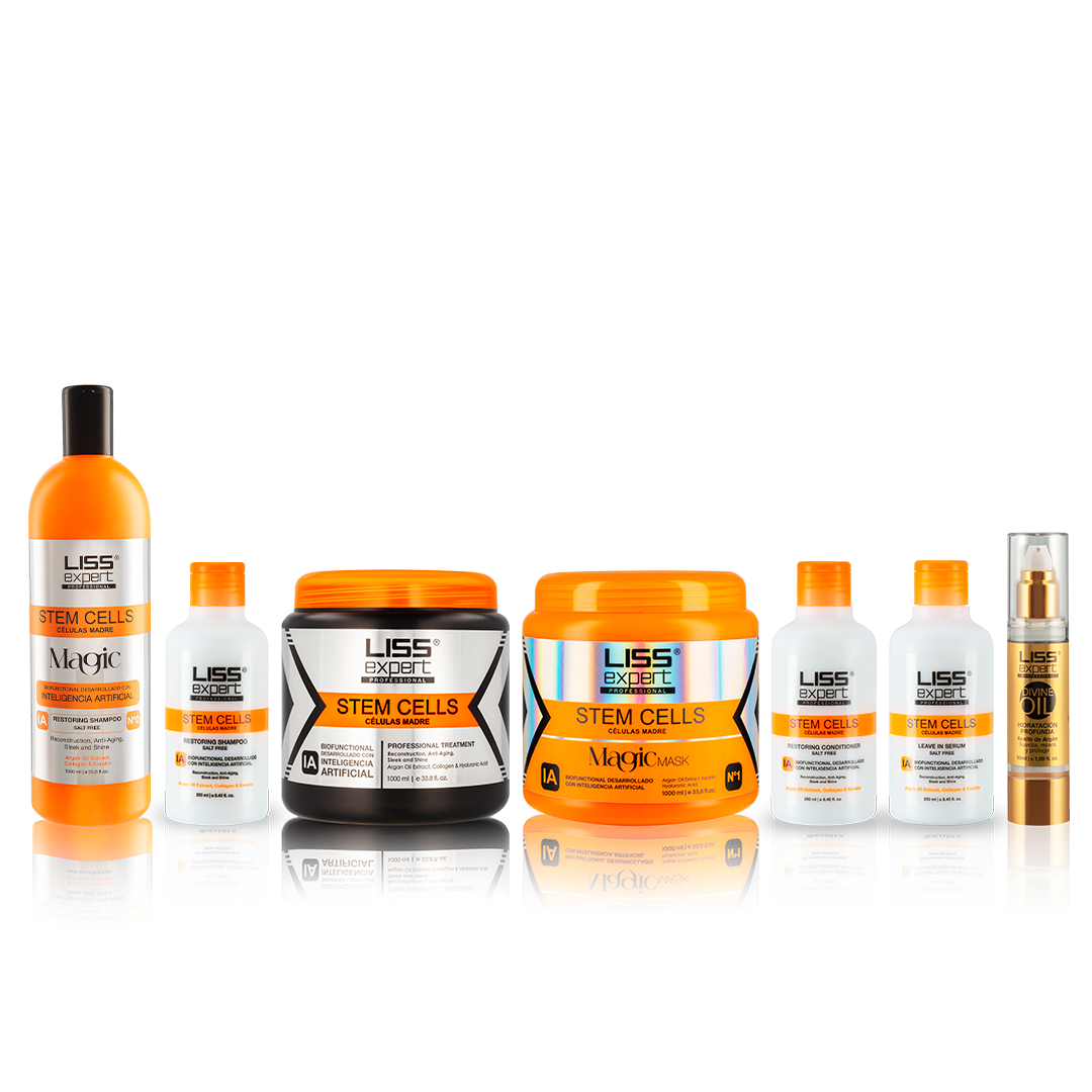STEM CELLS MAGIC MASK is formulated with ingredients developed with Artificial Intelligence, providing the hair with the latest technology worldwide. With a highly regenerating power, it recovers hair damaged by external aggressions or chemical processes from the first application . Detangled by excellence, helps with daily styling, moisturizes, provides HD shine, prevents and eliminates frizz.